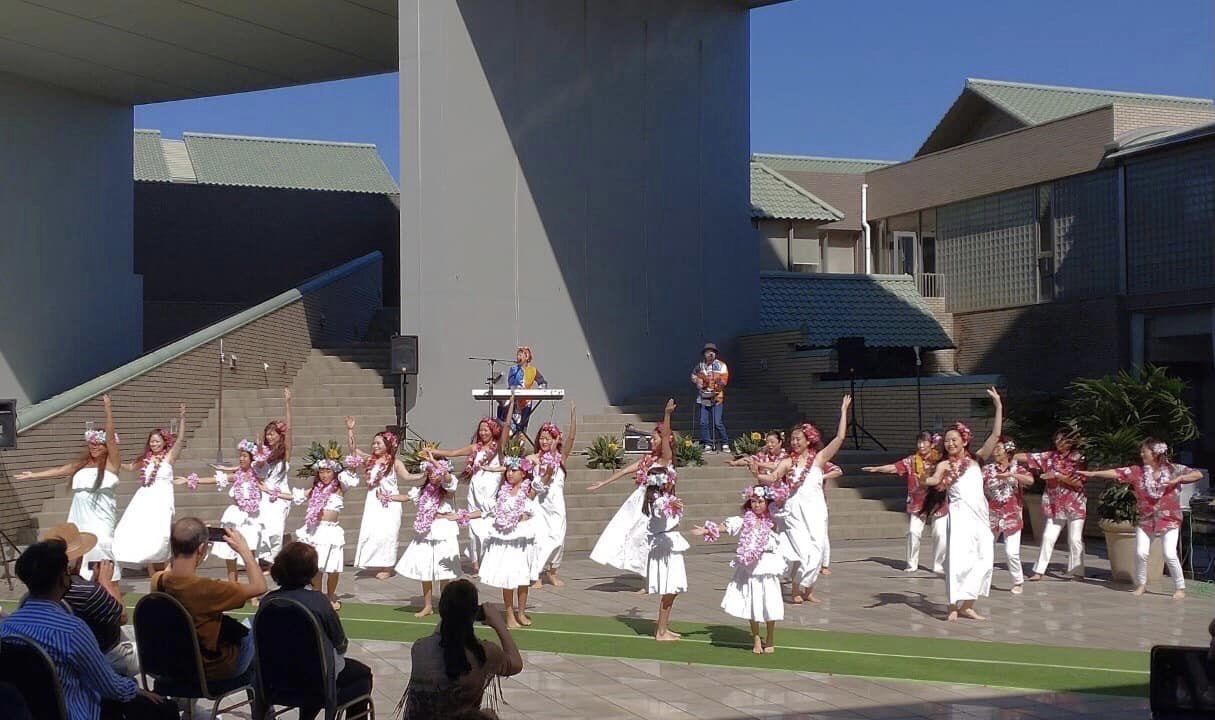 9月から音楽の授業を選択でウクレレを一緒に取り組んだ3年生も一緒にステージにあがりました。
